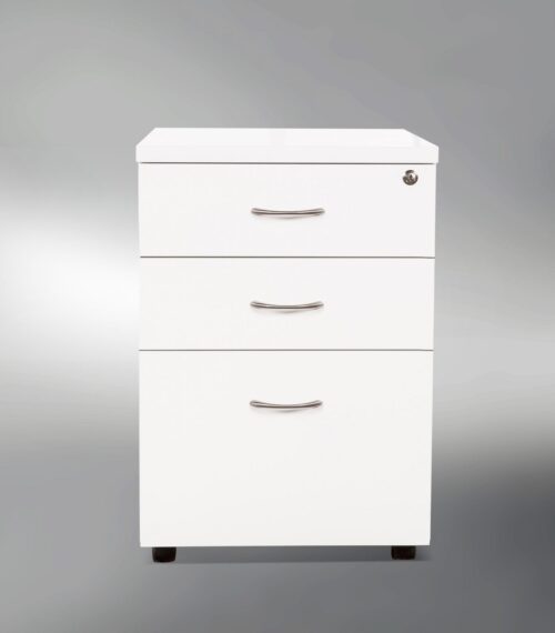 Features Height range: 680 – 1130 mm White Powdercoated frame 25 mm worksurfaces finished in White melamine on E0 grade