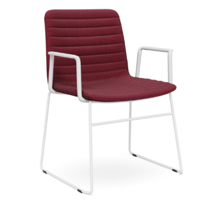 DD Nikola White Sled base Fabric Upholstered Chair with Arm Rest – Wine