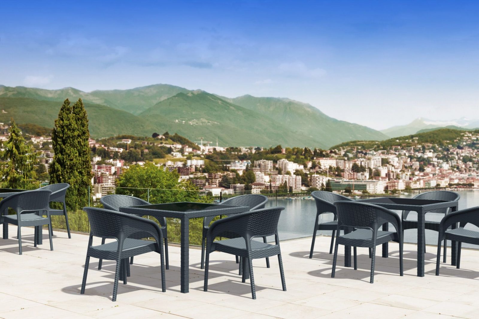 The Bali Table, meticulously crafted in Europe by Siesta, showcases high-quality polypropylene reinforced with fiberglass, ensuring unrivalled durability. The addition of a sleek black tempered glass insert elevates the aesthetic while maintaining resistance to UV rays, making it the perfect centrepiece for indoor and shaded outdoor commercial spaces.