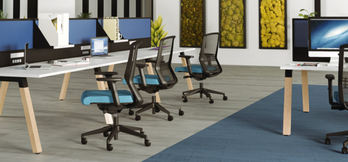 Lightweight Studio Screen for individual desk. White powdercoat finish frame with pinnable core. Includes desk hung screen brackets. Optional in-screen ducting or bracket-mounted cable tray.