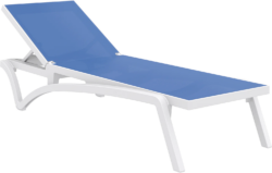 FL 4 Pacific Poolside Sunlounger with 3 Ocean Side Table Package – White Frame Blue Fabric